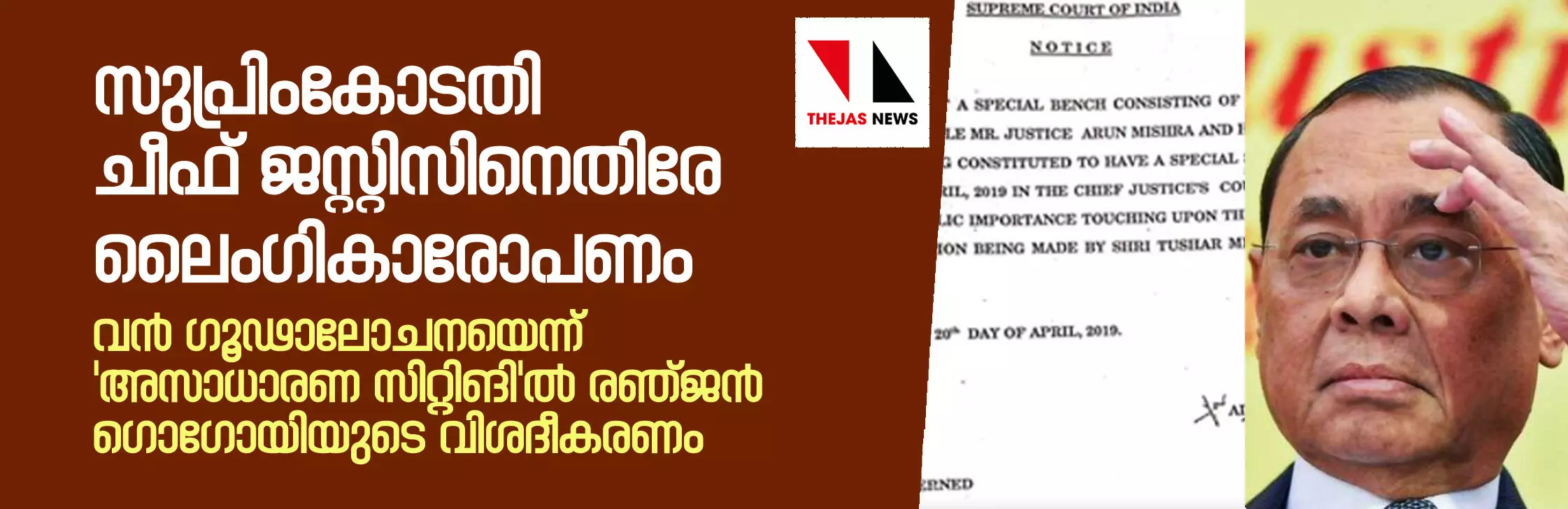 വന് ഗൂഢാലോചനയെന്ന് 'അസാധാരണ സിറ്റിങി'ല് രഞ്ജന് ഗൊഗോയിയുടെ വിശദീകരണം