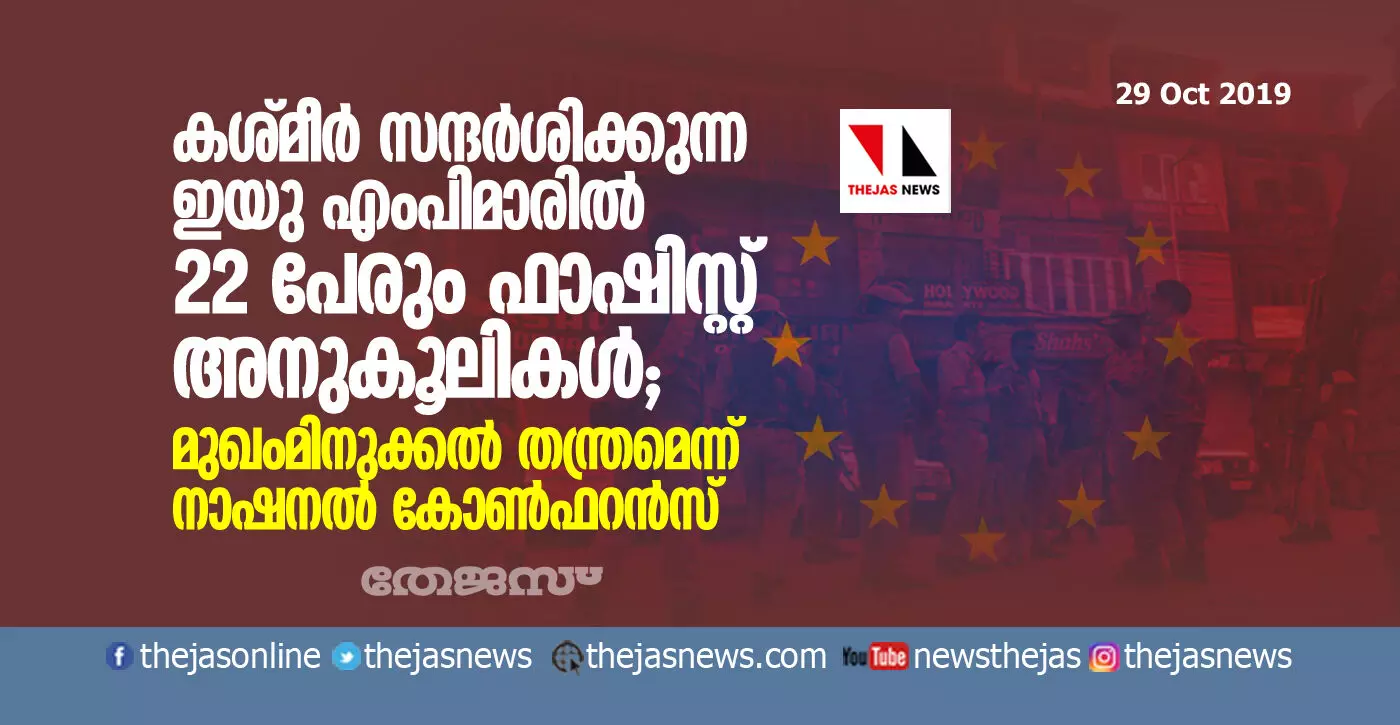 കശ്മീര് സന്ദര്ശിക്കുന്ന ഇയു എംപിമാരില് 22 പേരും ഫാഷിസ്റ്റ് അനുകൂലികള്; മുഖംമിനുക്കല് തന്ത്രമെന്ന് നാഷനല് കോണ്ഫറന്സ്