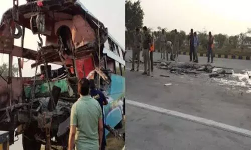 ന്യൂഡല്ഹി: ഡല്ഹിയിലെ യമുനാ എക്സ്പ്രസ് പാതയില് ബസ്സും ട്രക്കും കൂട്ടിയിടിച്ച് എട്ടുപേര് മരിച്ചു. 30ഓളം പേര്ക്ക് പരിക്കേറ്റു. ഇന്ന് പുലര്ച്ചെയോടെയാണ് അപകടം നടന്നത്. എങ്ങനെയാണ് അപകടമുണ്ടായതെന്ന കാര്യത്തില് അവ്യക്തത തുടരുകയാണ്. കൂട്ടിയിടിയില് ബസ്സിന്റെ പകുതി ഭാഗവും തകര്ന്നിരുന്നു. ആഗ്രയില് നിന്ന് വരികയായിരുന്ന ബസ് നിയന്ത്രണം വിട്ട് എതിര്ദിശയില് വരുന്ന ട്രക്കില് ഇടിക്കുകയായിരുന്നു. പരിക്കേറ്റവരെ സമീപത്തുള്ള ആശുപത്രിയില് പ്രവേശിപ്പിച്ചു.