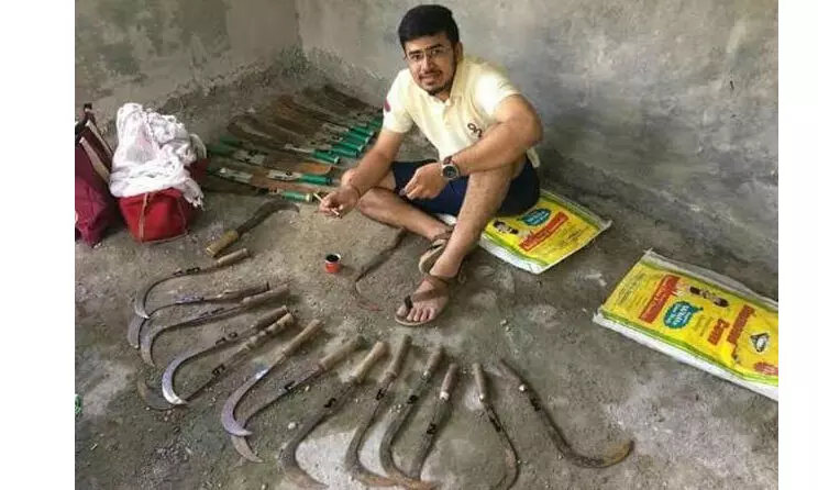 സാമൂഹിക മാധ്യമങ്ങളില് തരംഗമായി ആയുധങ്ങള് മിനുക്കുന്ന ബിജെപി സ്ഥാനാര്ഥിയുടെ പടം