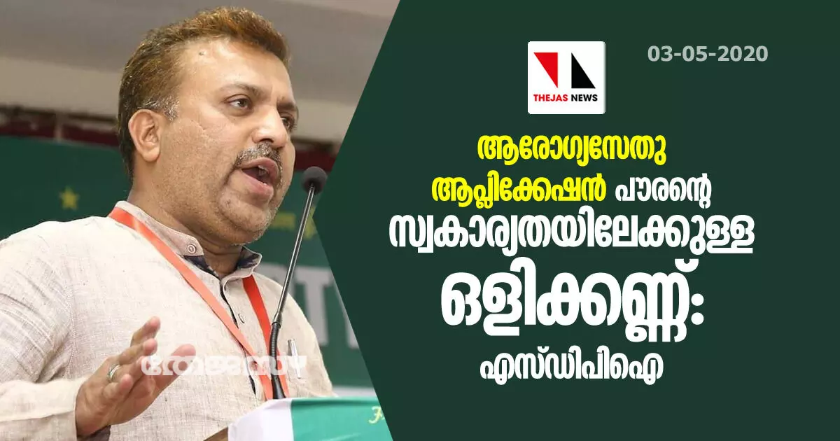 ആരോഗ്യസേതു ആപ്ലിക്കേഷന് പൗരന്റെ സ്വകാര്യതയിലേക്കുള്ള ഒളികണ്ണ്: എസ്ഡിപിഐ