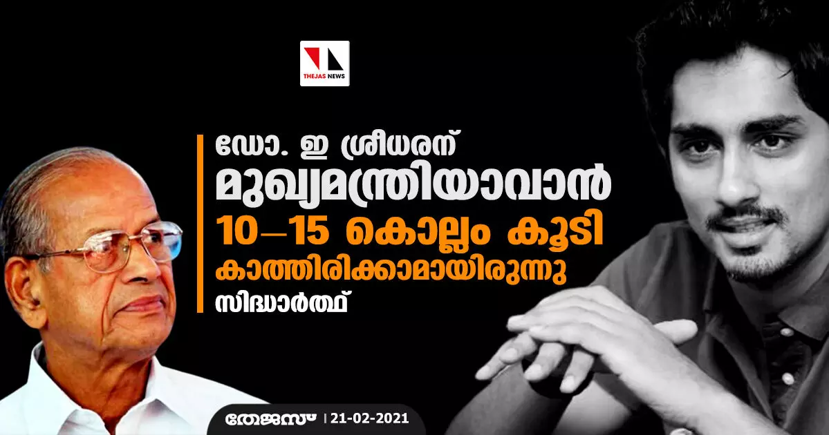 ഡോ. ഇ ശ്രീധരന് മുഖ്യമന്ത്രിയാവാൻ 10-15 കൊല്ലം കൂടി കാത്തിരിക്കാമായിരുന്നു: സിദ്ധാർത്ഥ്