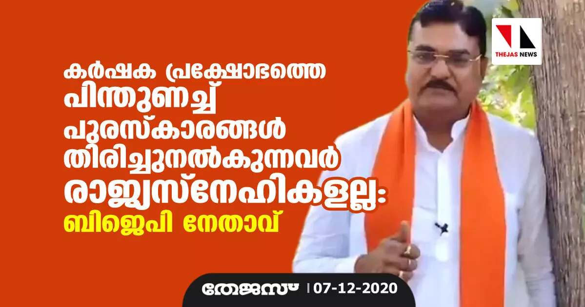 കര്ഷക പ്രക്ഷോഭത്തെ പിന്തുണച്ച് പുരസ്കാരങ്ങള് തിരിച്ചുനല്കുന്നവര് രാജ്യസ്നേഹികളല്ല: ബിജെപി നേതാവ്
