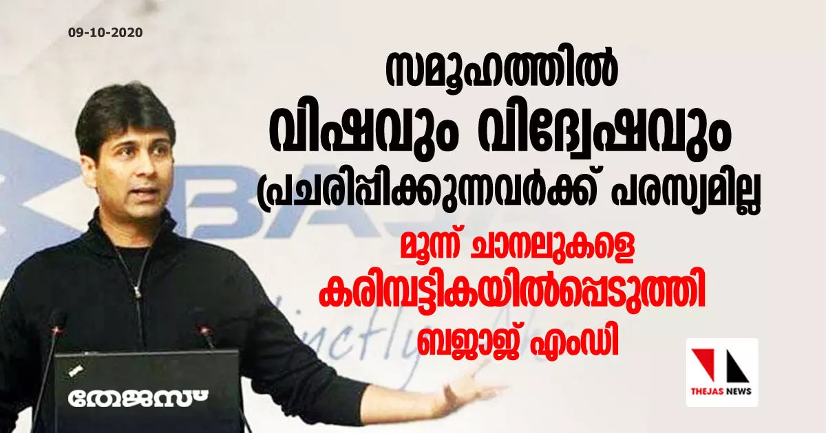 സമൂഹത്തില് വിഷവും വിദ്വേഷവും പ്രചരിപ്പിക്കുന്നവര്ക്ക് പരസ്യമില്ല; മൂന്ന് ചാനലുകളെ കരിമ്പട്ടികയില്പ്പെടുത്തി- ബജാജ് എംഡി