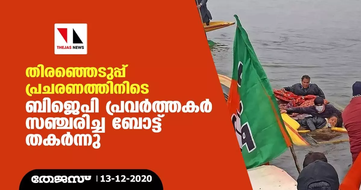 തിരഞ്ഞെടുപ്പ് പ്രചരണത്തിനിടെ ബിജെപി പ്രവർത്തകർ സഞ്ചരിച്ച ബോട്ട് തകർന്നു