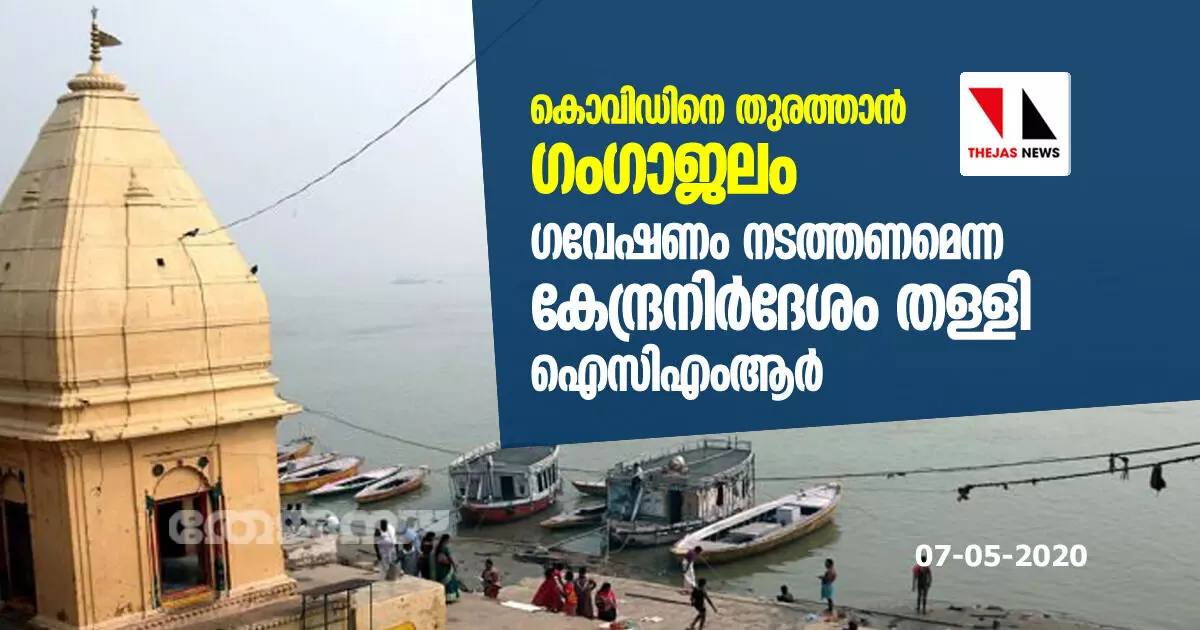 കൊവിഡിനെ തുരത്താന് ഗംഗാജലം; ഗവേഷണം നടത്തണമെന്ന കേന്ദ്രനിര്ദേശം തള്ളി ഐസിഎംആര്