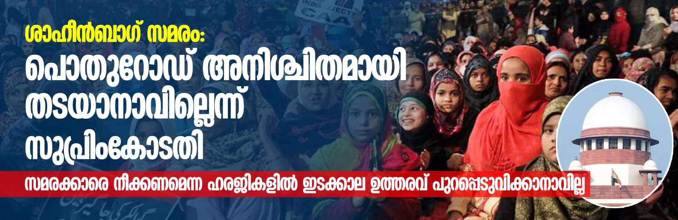 ശാഹീന്ബാഗ് സമരം: പൊതുറോഡ് അനിശ്ചിതമായി തടയാനാവില്ലെന്ന് സുപ്രിംകോടതി