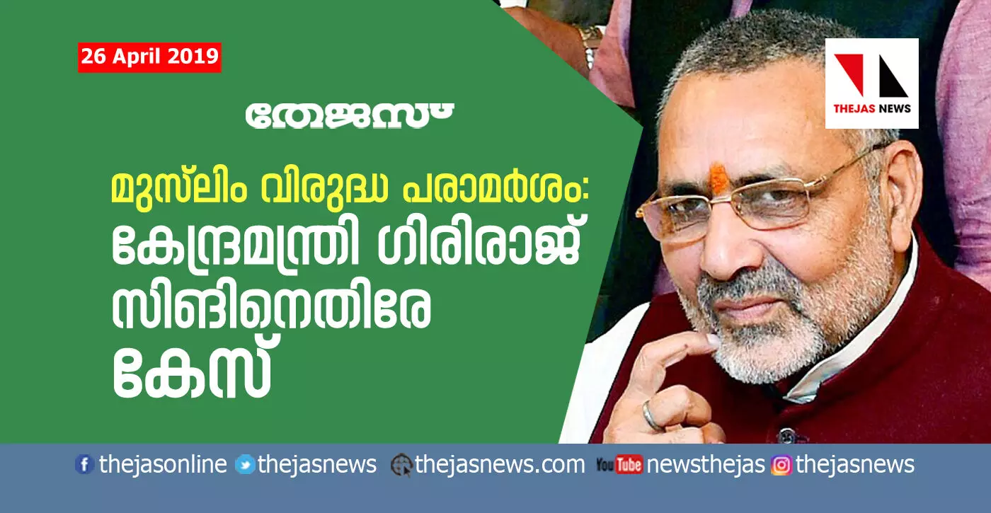 പട്ന: മുസ്ലിം വിരുദ്ധ പ്രസംഗം നടത്തിയതിന് ബിജെപി നേതാവും കേന്ദ്രമന്ത്രിയുമായ ഗിരിരാജ് സിങ്ങിനെതിരേ കേസ്. തിരഞ്ഞെടുപ്പ് പെരുമാറ്റ ചട്ടം ലംഘിച്ചതിനാണ് ബെഗൂസ്റായ് പോലിസ് സ്റ്റേഷനില് കേസ് രജിസ്റ്റര് ചെയ്തത്.
