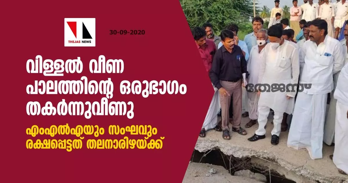 വിള്ളല് വീണ പാലത്തിന്റെ ഒരുഭാഗം തകര്ന്നുവീണു; എംഎല്എയും സംഘവും രക്ഷപ്പെട്ടത് തലനാരിഴയ്ക്ക്