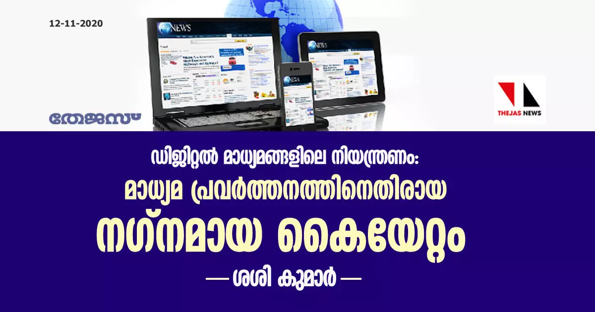 ഡിജിറ്റല് മാധ്യമങ്ങളിലെ നിയന്ത്രണം മാധ്യമ പ്രവര്ത്തനത്തിനെതിരായ നഗ്നമായ കയ്യേറ്റം: ശശി കുമാര്