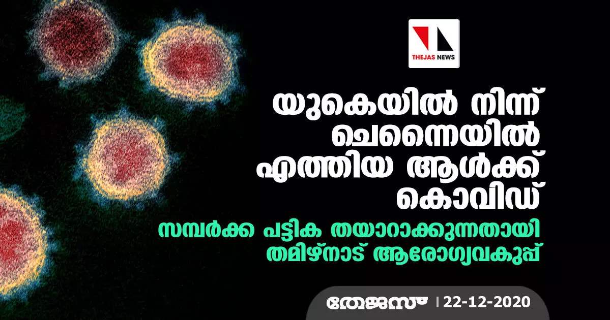 യുകെയിൽ നിന്ന് ചെന്നൈയിൽ എത്തിയ ആൾക്ക് കൊവിഡ്; സമ്പർക്ക പട്ടിക തയാറാക്കുന്നതായി തമിഴ്നാട് ആരോഗ്യവകുപ്പ്