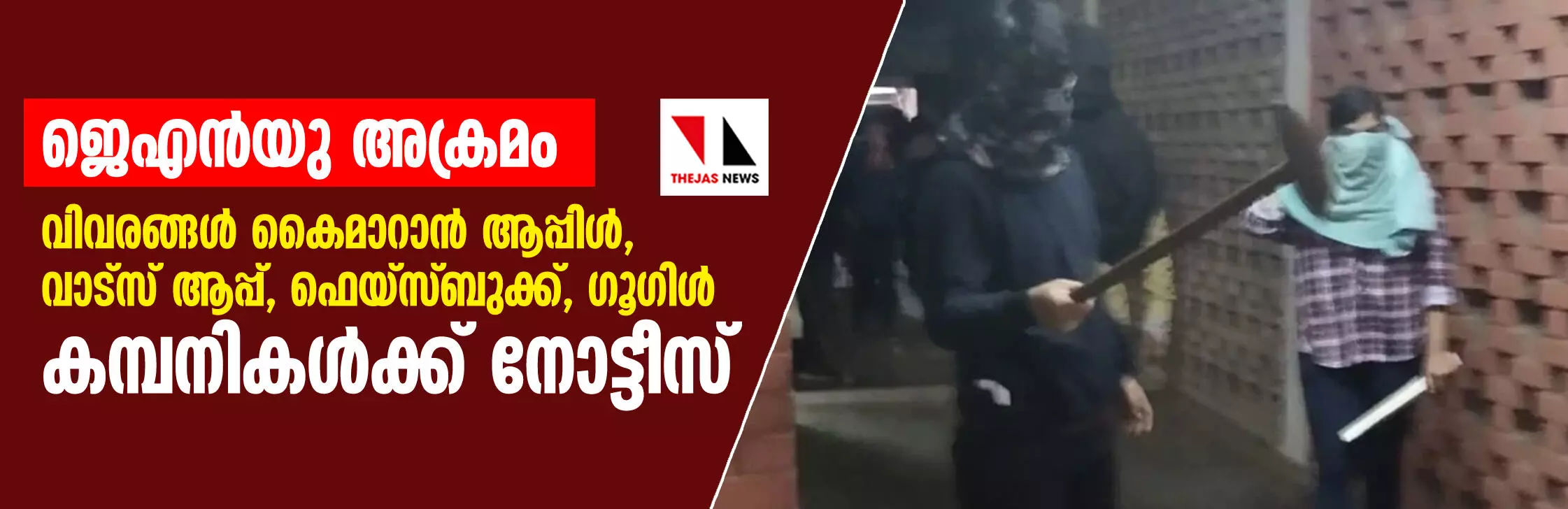 ജെഎന്യു അക്രമം: വിവരങ്ങള് കൈമാറാന് ആപ്പിള്, വാട്സ് ആപ്പ്, ഫെയ്സ്ബുക്ക്, ഗൂഗിള് കമ്പനികള്ക്ക് നോട്ടീസ്