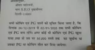 ഡല്ഹിയിലെ കോച്ചിങ് കേന്ദ്രങ്ങള് അടച്ചുപൂട്ടാന് പോലിസ് നിര്ദ്ദേശം.