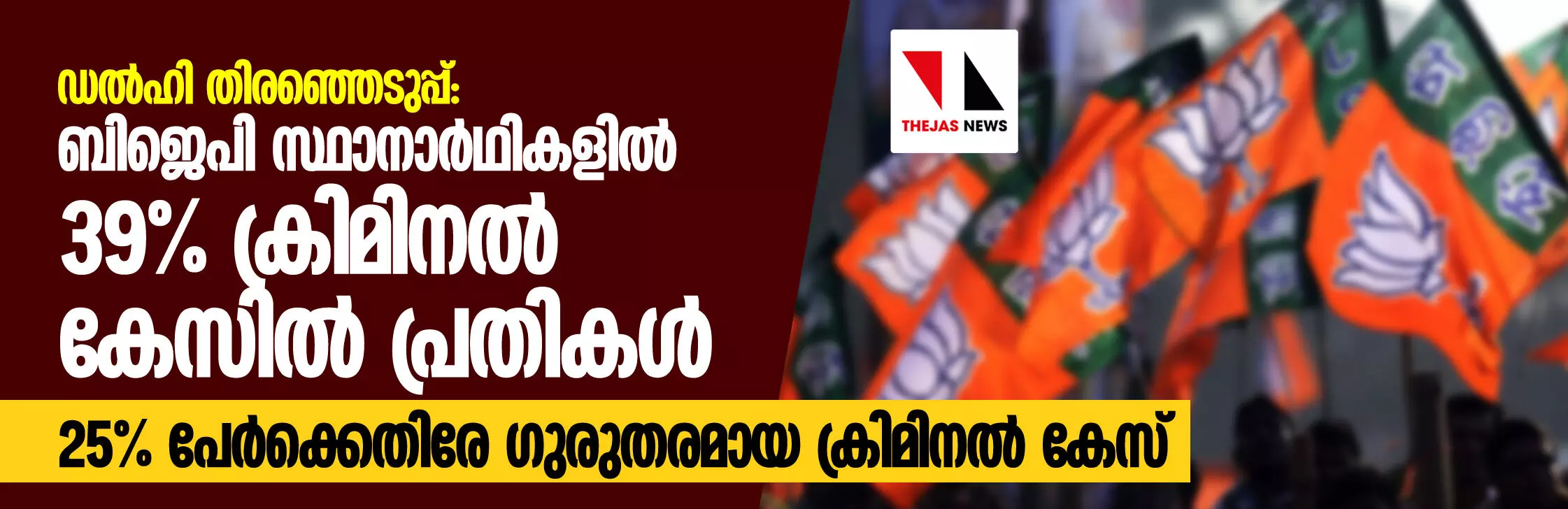 ഡല്ഹി തിരഞ്ഞെടുപ്പ്: ബിജെപി സ്ഥാനാര്ഥികളില് 39 % ക്രിമിനല് കേസില് പ്രതികള്