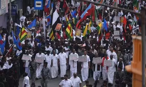 ഡിഎംകെ നേതാക്കളായ എം കെ സ്റ്റാലിന്, കനിമൊഴി, കോണ്ഗ്രസ് നേതാവ് പി ചിദംബരവും എംഡിഎംകെ നേതാവ് വൈകോ, വിസികെ നേതാവ് തൊല് തിരുമാവളവന് തുടങ്ങിയവര് റാലിയില് പങ്കെടുക്കുന്നുണ്ട്.