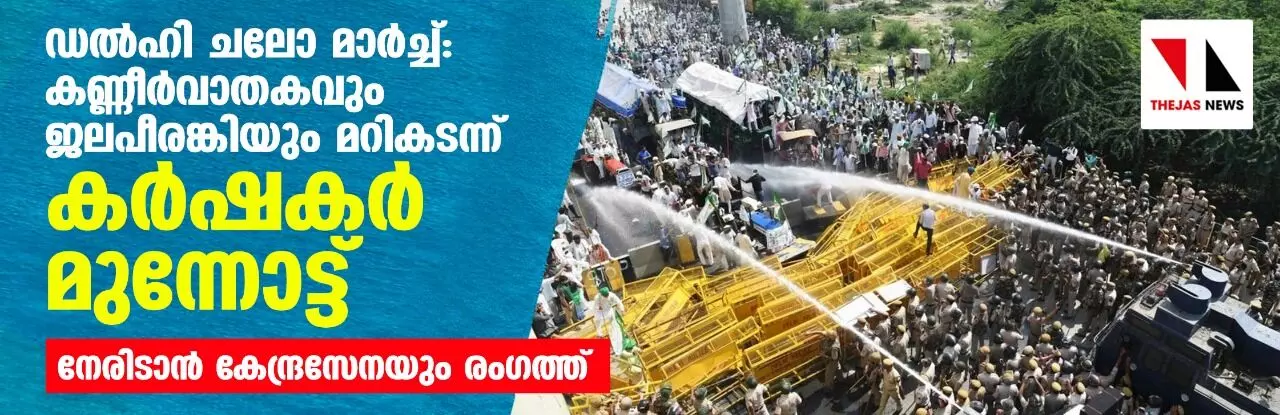 ഡല്ഹി ചലോ മാര്ച്ച്: കണ്ണീര്വാതകവും ജലപീരങ്കിയും മറികടന്ന് കര്ഷകര് മുന്നോട്ട്; നേരിടാന് കേന്ദ്രസേനയും രംഗത്ത്