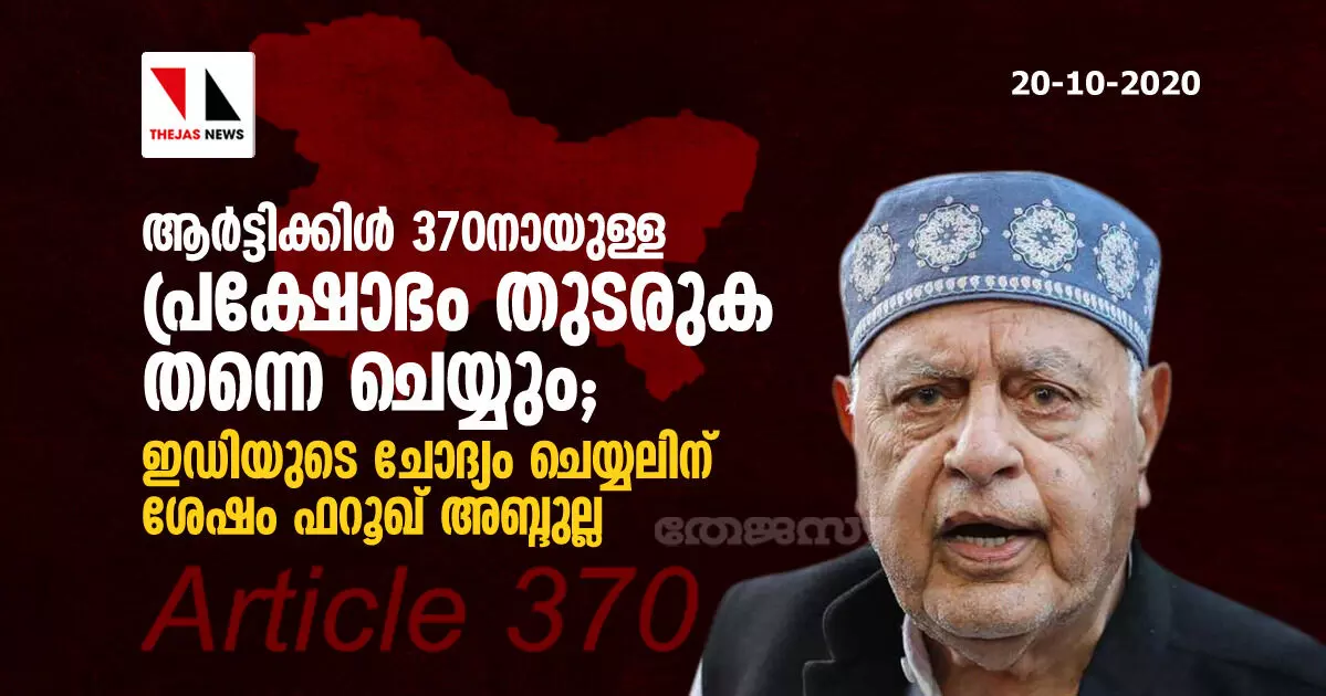 ആർട്ടിക്കിൾ 370 നായുള്ള പ്രക്ഷോഭം തുടരുക തന്നെ ചെയ്യും; ഇഡിയുടെ ചോദ്യം ചെയ്യലിന് ശേഷം ഫറൂഖ് അബ്ദുല്ല