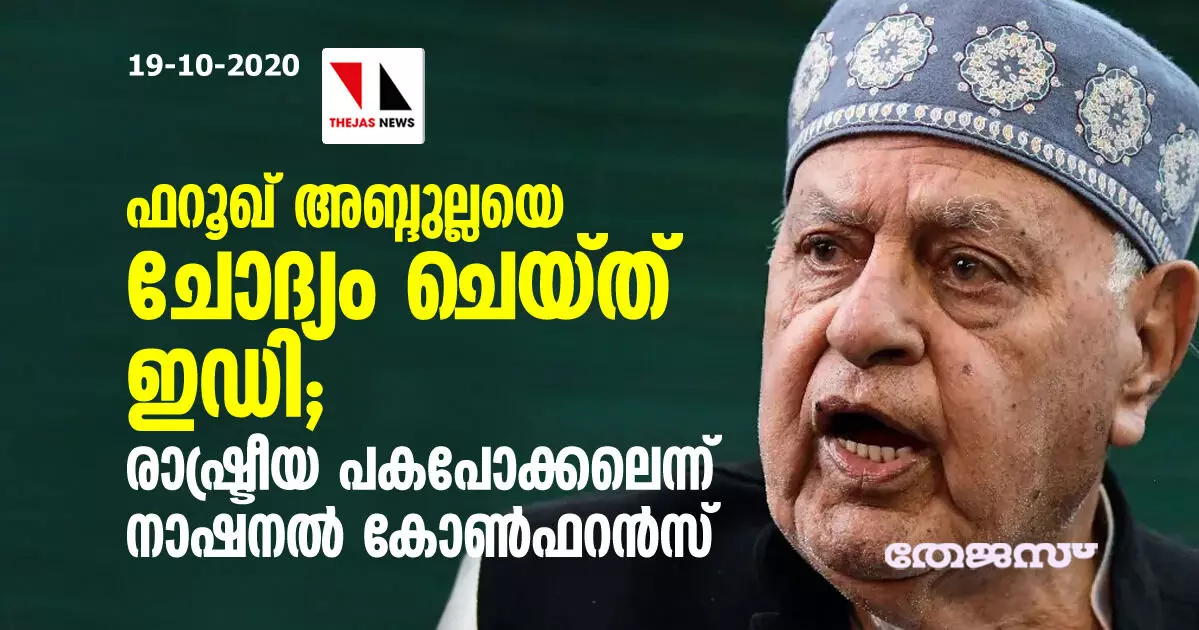 ഫറൂഖ് അബ്ദുല്ലയെ ചോദ്യം ചെയ്ത് ഇഡി; രാഷ്ട്രീയ പകപോക്കലെന്ന് നഷണല് കോണ്ഫറന്സ്