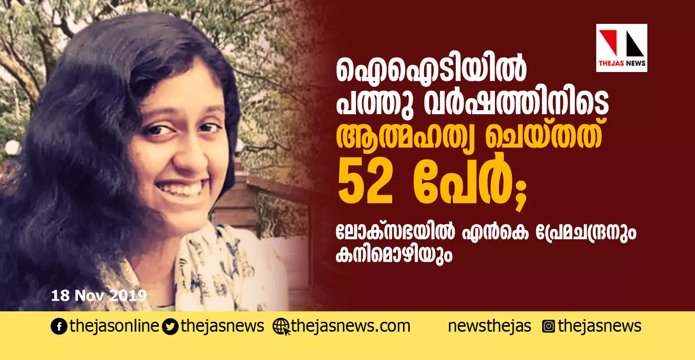 ഫാത്തിമ ലത്തീഫിൻറെ ആത്മഹത്യ; ലോക്സഭയിൽ ആഞ്ഞടിച്ച് എന്കെ പ്രേമചന്ദ്രനും കനിമൊഴിയും