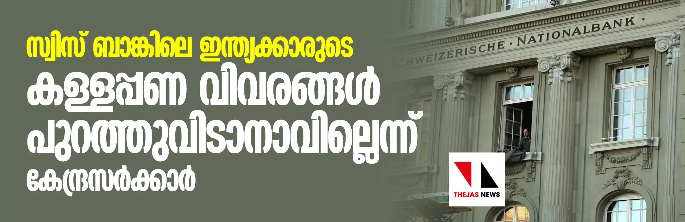 സ്വിസ് ബാങ്കിലെ ഇന്ത്യക്കാരുടെ കള്ളപ്പണ വിവരങ്ങള് പുറത്തുവിടാനാവില്ലെന്ന് കേന്ദ്രസര്ക്കാര്