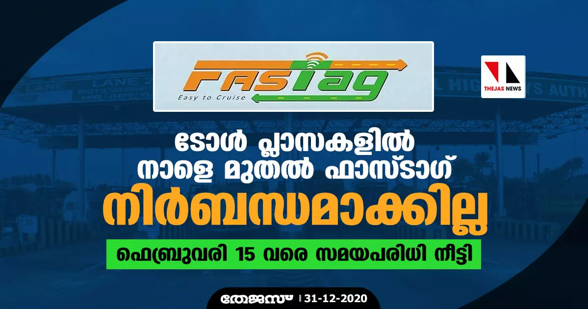 ടോള് പ്ലാസകളില് നാളെ മുതല് ഫാസ്ടാഗ് നിര്ബന്ധമാക്കില്ല; ഫെബ്രുവരി 15 വരെ സമയപരിധി നീട്ടി