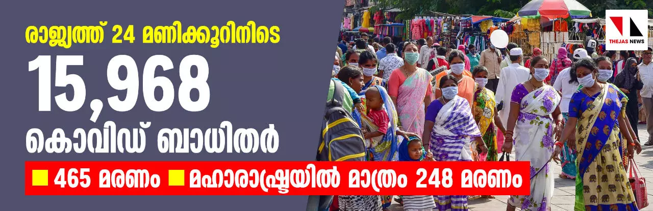 രാജ്യത്ത് 24 മണിക്കൂറിനിടെ 15,968 കൊവിഡ് ബാധിതര്, 465 മരണം; മഹാരാഷ്ട്രയില് മാത്രം 248 മരണം