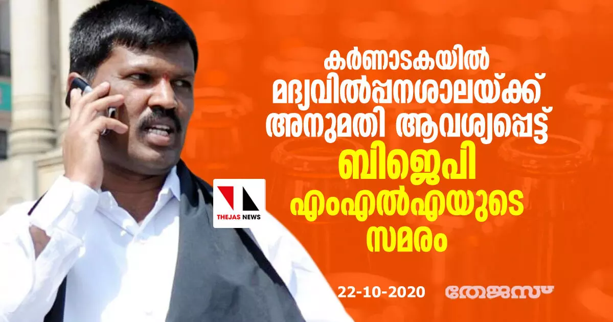 കർണാടകയിൽ മദ്യവിൽപ്പനശാലയ്ക്ക് അനുമതി ആവശ്യപ്പെട്ട് ബിജെപി എംഎൽഎയുടെ സമരം