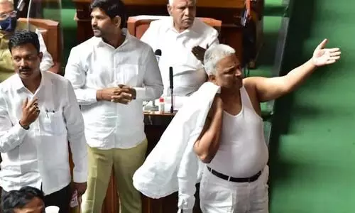 കര്ണാടക നിയമസഭയില് ഷര്ട്ടൂരി പ്രതിഷേധം; കോണ്ഗ്രസ് എംഎല്എയ്ക്കു സസ്പെന്ഷന്