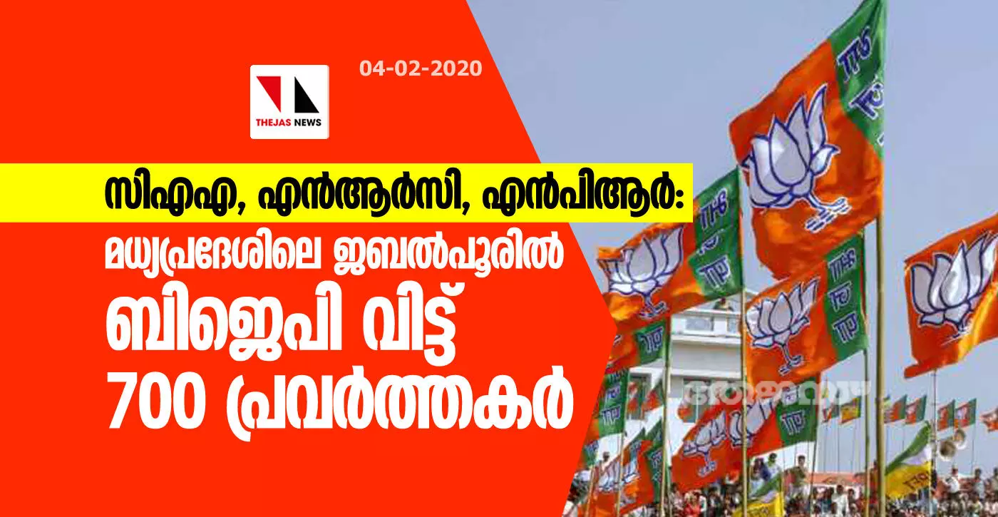സിഎഎ, എന്ആര്സി, എന്പിആര്: മധ്യപ്രദേശിലെ ജബല്പൂരില് ബിജെപി വിട്ട് 700 പ്രവര്ത്തകര്