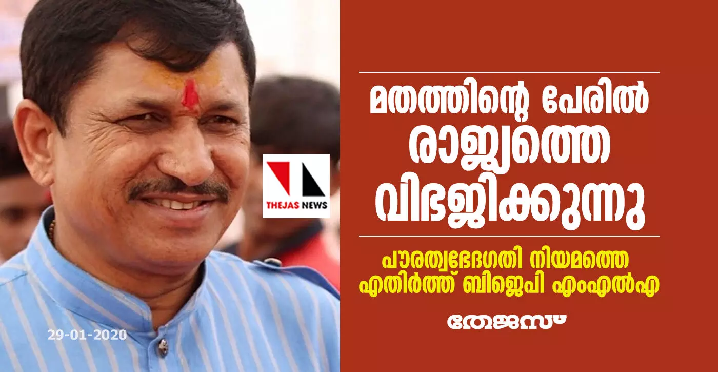 മതത്തിന്റെ പേരില് രാജ്യത്തെ വിഭജിക്കുന്നു; പൗരത്വ ഭേദഗതി നിയമത്തെ എതിര്ത്ത് ബിജെപി എംഎല്എ