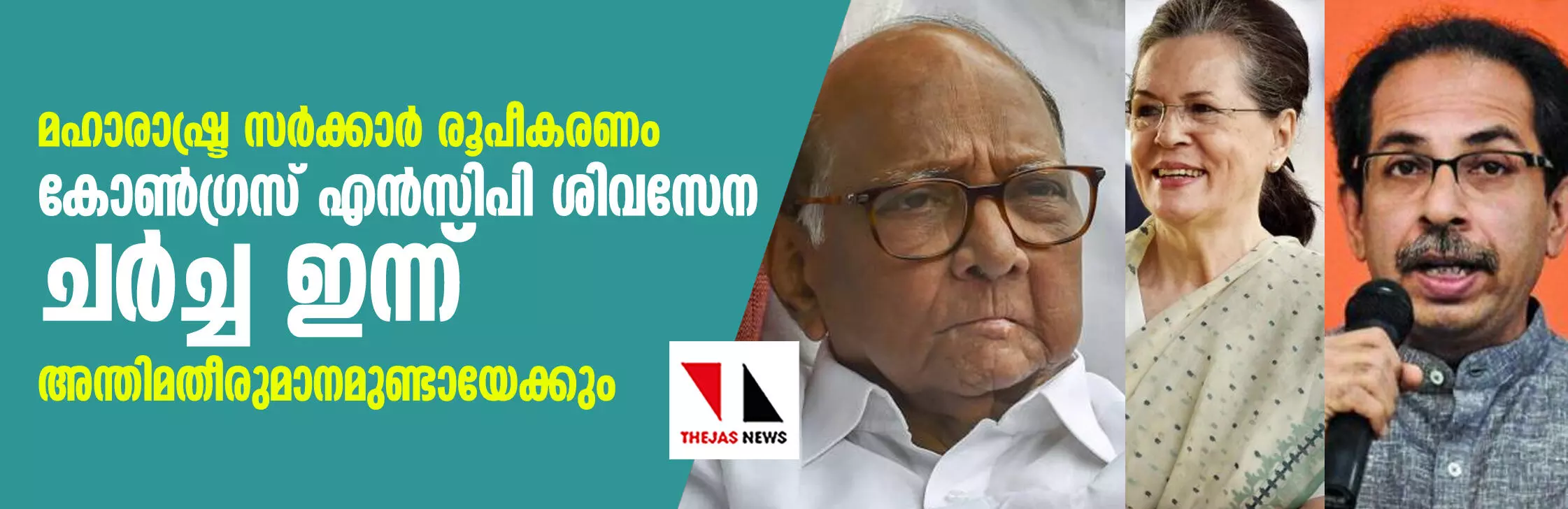 മഹാരാഷ്ട്ര സര്ക്കാര് രൂപീകരണം: കോണ്ഗ്രസ്- എന്സിപി- ശിവസേന ചര്ച്ച ഇന്ന്; അന്തിമതീരുമാനമുണ്ടായേക്കും