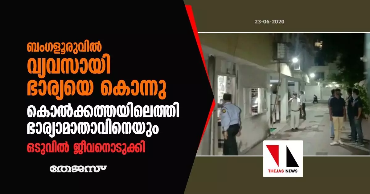ബംഗളൂരുവില് വ്യവസായി ഭാര്യയെ കൊന്നു, കൊല്ക്കത്തയിലെത്തി ഭാര്യാമാതാവിനെയും; ഒടുവില് ജീവനൊടുക്കി