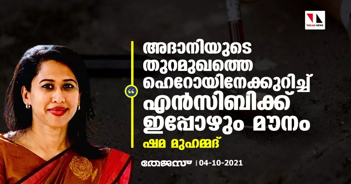 അദാനിയുടെ തുറമുഖത്തെ ഹെറോയിനേക്കുറിച്ച് എന്സിബിക്ക് ഇപ്പോഴും മൗനം: ഷമ മുഹമ്മദ്