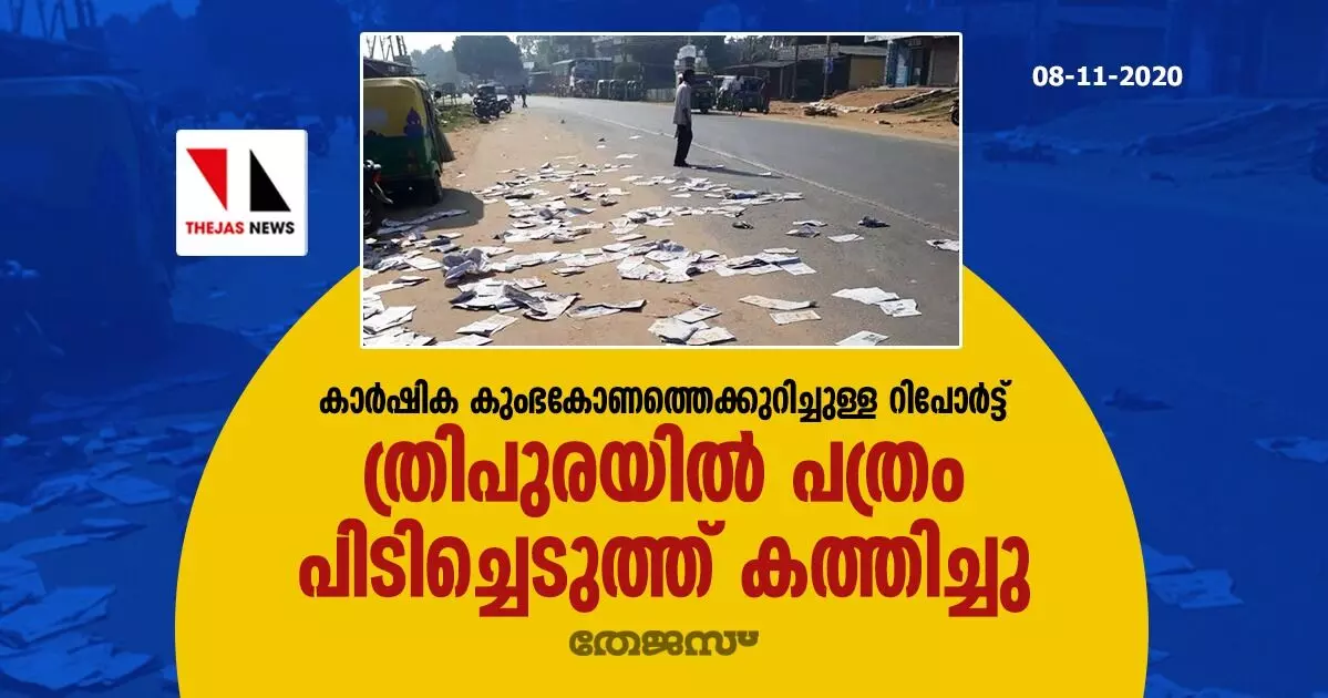 കാർഷിക കുംഭകോണത്തെക്കുറിച്ചുള്ള റിപോർട്ട്; ത്രിപുരയിൽ പത്രം പിടിച്ചെടുത്ത് കത്തിച്ചു