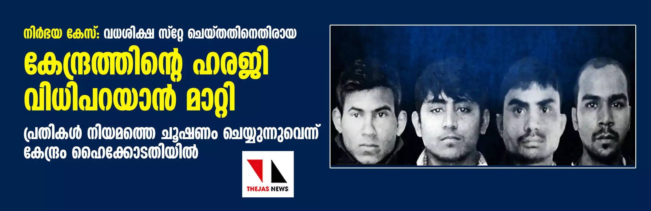 നിര്ഭയ കേസ്: വധശിക്ഷ സ്റ്റേ ചെയ്തതിനെതിരായ കേന്ദ്രത്തിന്റെ ഹരജി വിധിപറയാന് മാറ്റി