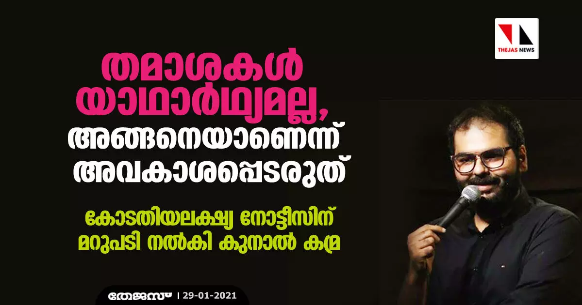 തമാശകള് യാഥാര്ഥ്യമല്ല, അങ്ങനെയാണെന്ന് അവകാശപ്പെടരുത്; കോടതിയലക്ഷ്യ നോട്ടീസിന് മറുപടി നല്കി കുനാല് കമ്ര