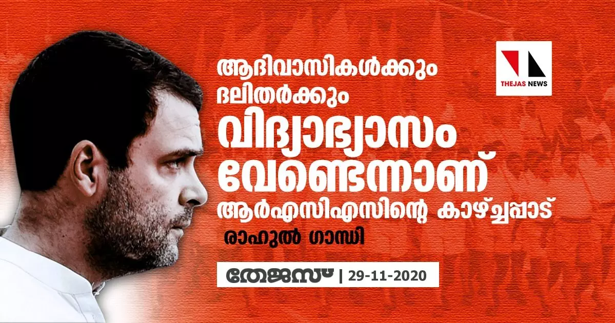ആദിവാസികള്ക്കും ദലിതര്ക്കും വിദ്യാഭ്യാസം വേണ്ടെന്നാണ് ആര്എസിഎസിന്റെ കാഴ്ച്ചപ്പാട്: രാഹുല് ഗാന്ധി