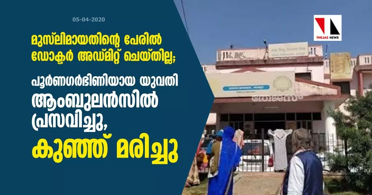 മുസ്ലിമായതിന്റെ പേരില് ഡോക്ടര് അഡ്മിറ്റ് ചെയ്തില്ല; പൂര്ണഗര്ഭിണിയായ യുവതി ആംബുലന്സില് പ്രസവിച്ചു, കുഞ്ഞ് മരിച്ചു