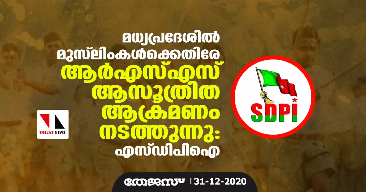 മധ്യപ്രദേശില് മുസ്ലിംകള്ക്കെതിരേ ആര്എസ്എസ് ആസൂത്രിത ആക്രമണം നടത്തുന്നു: എസ് ഡിപിഐ