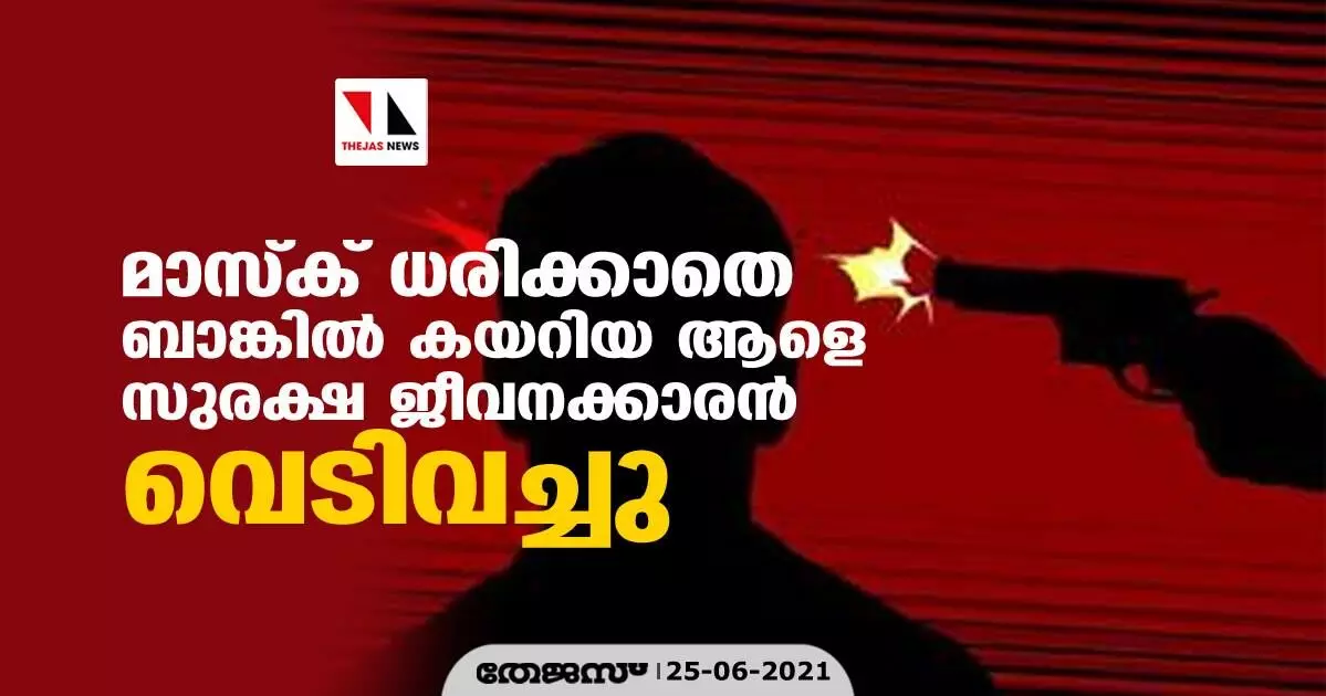 മാസ്ക് ധരിക്കാതെ ബാങ്കില് കയറിയ ആളെ സുരക്ഷ ജീവനക്കാരന് വെടിവച്ചു