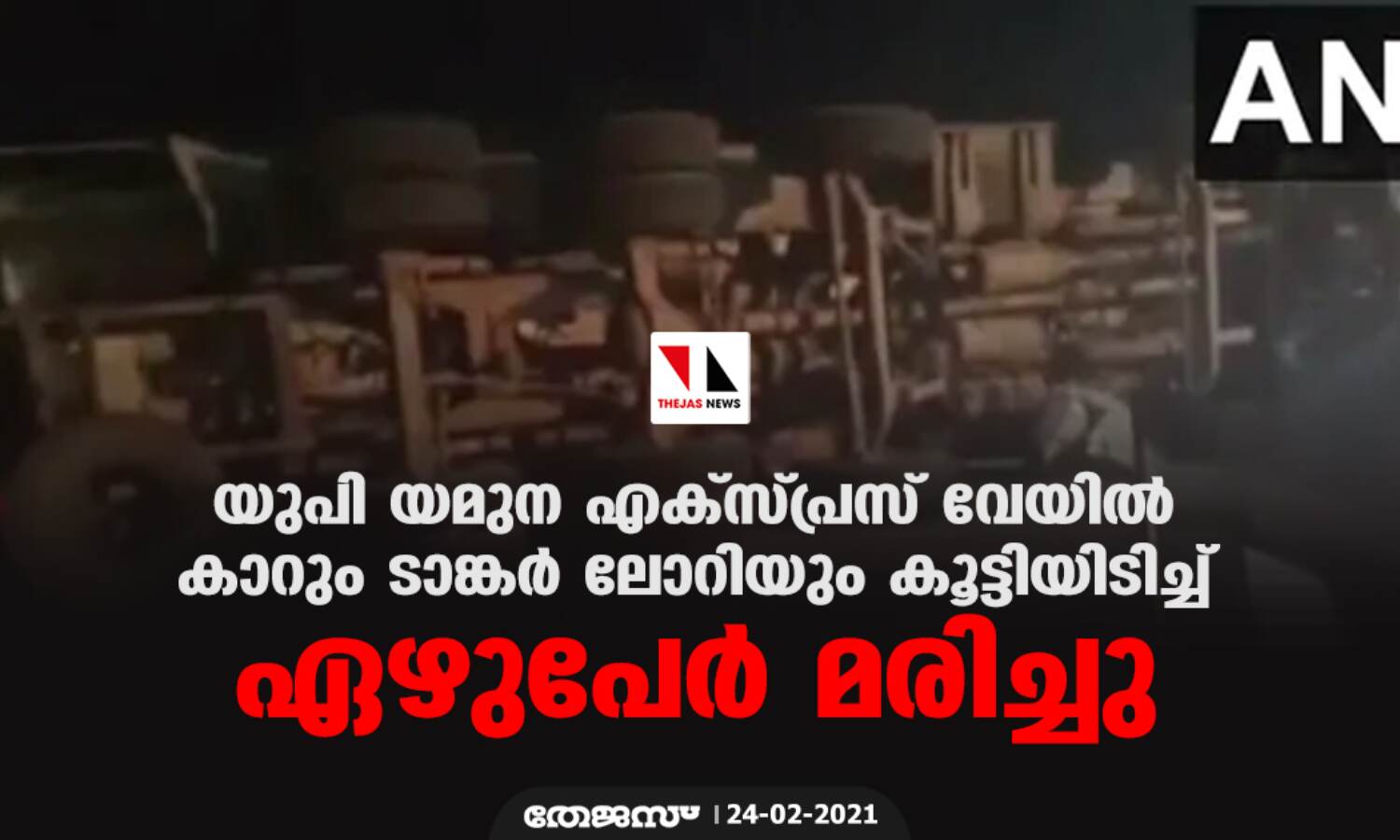 യുപി യമുന എക്സ്പ്രസ് വേയില് കാറും ടാങ്കര് ലോറിയും കൂട്ടിയിടിച്ച് ഏഴുപേര് മരിച്ചു