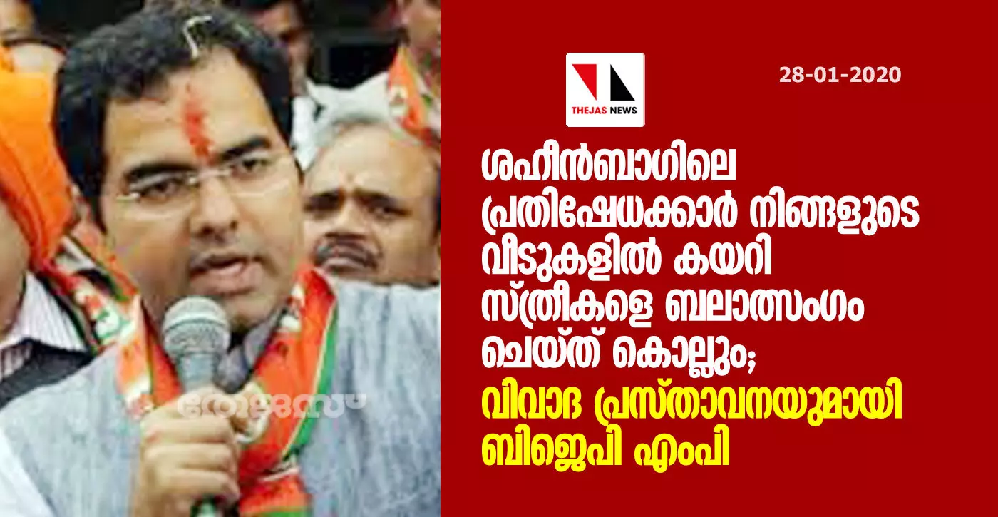 ശഹീന്ബാഗിലെ പ്രതിഷേധക്കാര് നിങ്ങളുടെ വീടുകളില് കയറി സ്ത്രീകളെ ബലാല്സംഗം ചെയ്ത് കൊല്ലും; വിവാദ പ്രസ്താവനയുമായി ബിജെപി എംപി