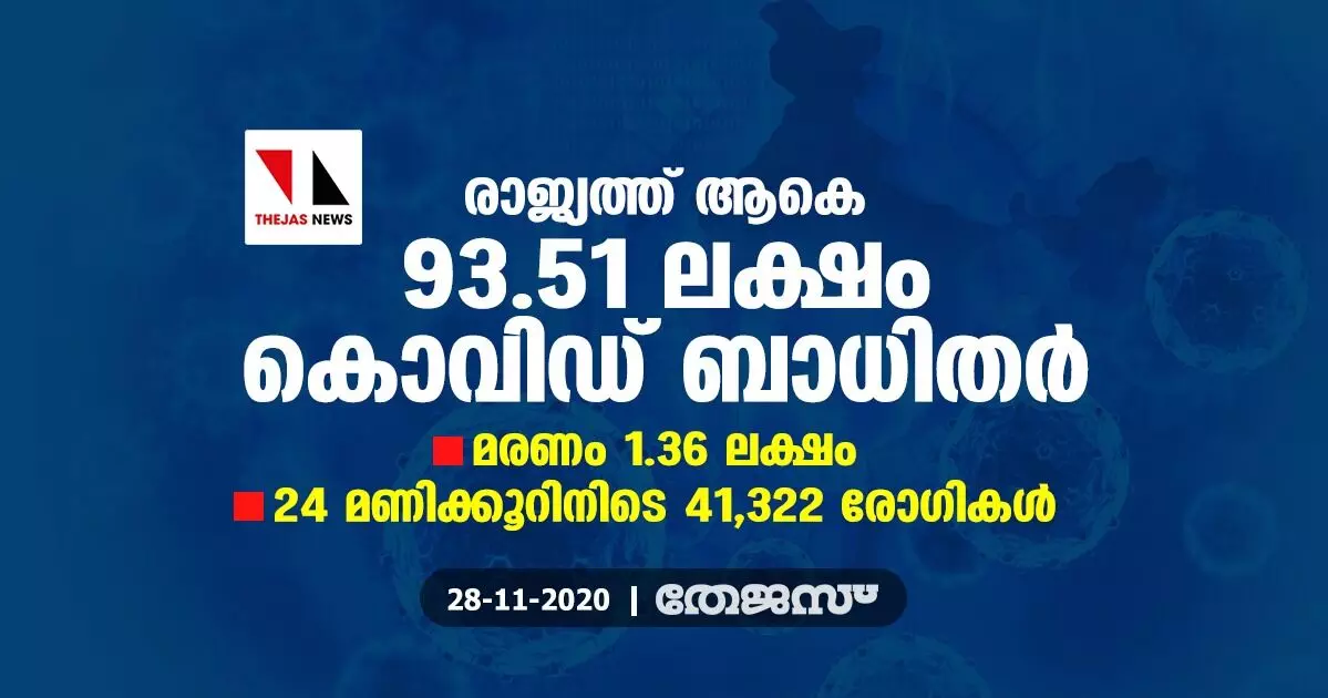 രാജ്യത്ത് ആകെ 93.51 ലക്ഷം കൊവിഡ് ബാധിതര്; മരണം 1.36 ലക്ഷം, 24 മണിക്കൂറിനിടെ 41,322 രോഗികള്