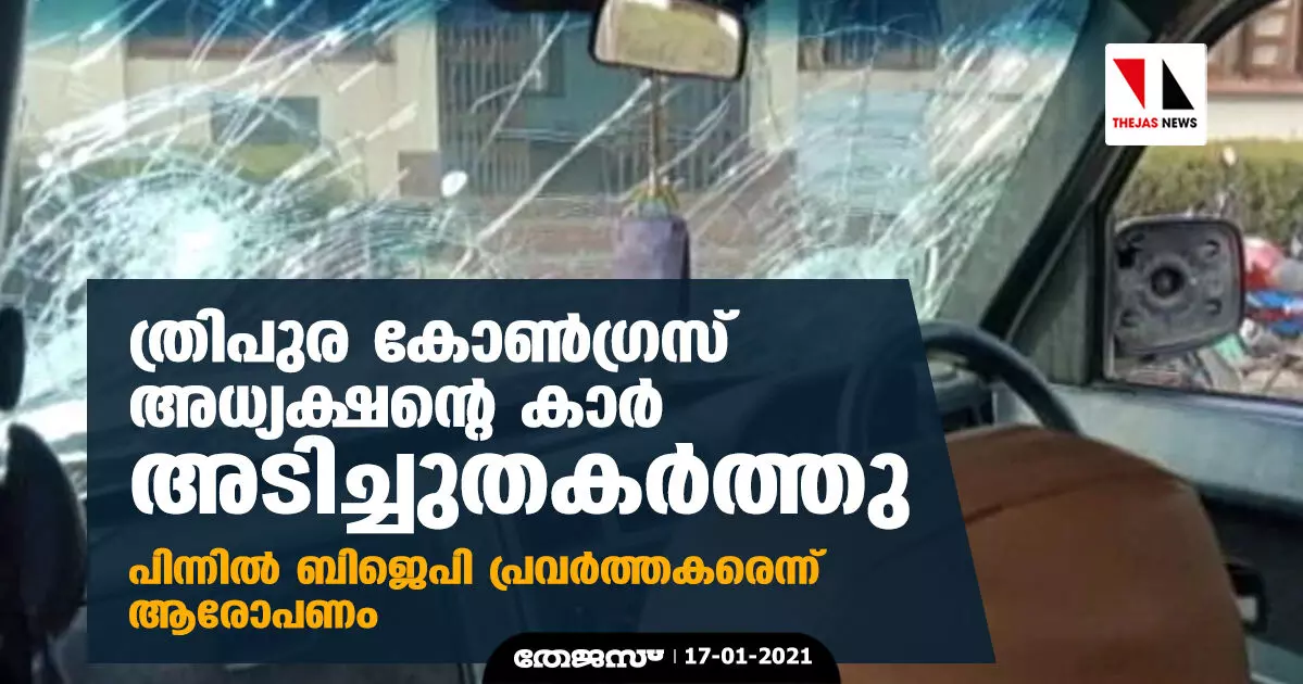 ത്രിപുര കോണ്ഗ്രസ് അധ്യക്ഷന്റെ കാര് അടിച്ചുതകര്ത്തു; പിന്നില് ബിജെപി പ്രവര്ത്തകരെന്ന് ആരോപണം