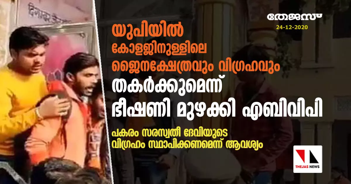 യുപിയില് കോളജിനുള്ളിലെ ജൈനക്ഷേത്രവും വിഗ്രഹവും തകര്ക്കുമെന്ന് ഭീഷണി മുഴക്കി എബിവിപി