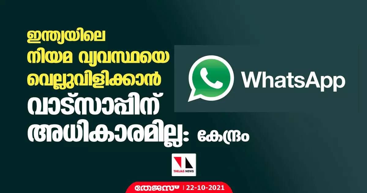 ഇന്ത്യയിലെ നിയമ വ്യവസ്ഥയെ വെല്ലുവിളിക്കാൻ വാട്സാപ്പിന് അധികാരമില്ല: കേന്ദ്രം