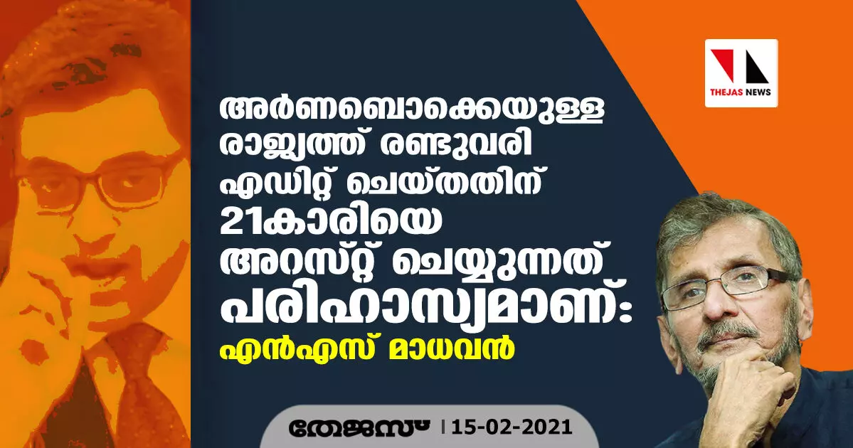 അർണബൊക്കെയുള്ള രാജ്യത്ത് രണ്ട് വരി എഡിറ്റ് ചെയ്തതിന് 21 കാരിയെ അറസ്റ്റ് ചെയ്യുന്നത് പരിഹാസ്യമാണ്: എൻഎസ് മാധവൻ