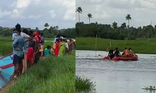 പഴുക്കാനില കായലില് ആറായിരംചിറ ഭാഗത്തുനിന്നും വീട്ടു സാധനങ്ങള് വാങ്ങാനായി കരിമ്പുംകാല ഭാഗത്തേക്ക് വള്ളത്തില് വന്ന രതീഷ് അപകടത്തില്പെടുകയായിരുന്നു. നാട്ടുകാര് വിവരമറിയിച്ചതിനെത്തുടര്ന്ന് കോട്ടയത്തുനിന്നുള്ള ഫയര്ഫോഴ്സും ചിങ്ങവനം പോലിസും രതീഷിനായി തിരച്ചില് തുടരുകയാണ്. രണ്ടുദിവസമായി പെയ്യുന്ന മഴയെത്തുടര്ന്ന് കായലില് വെള്ളവും കൂടുതലാണ്.