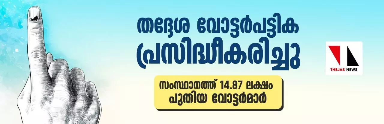 തദ്ദേശ വോട്ടര്പട്ടിക പ്രസിദ്ധീകരിച്ചു; സംസ്ഥാനത്ത് 14.87 ലക്ഷം പുതിയ വോട്ടര്മാര്