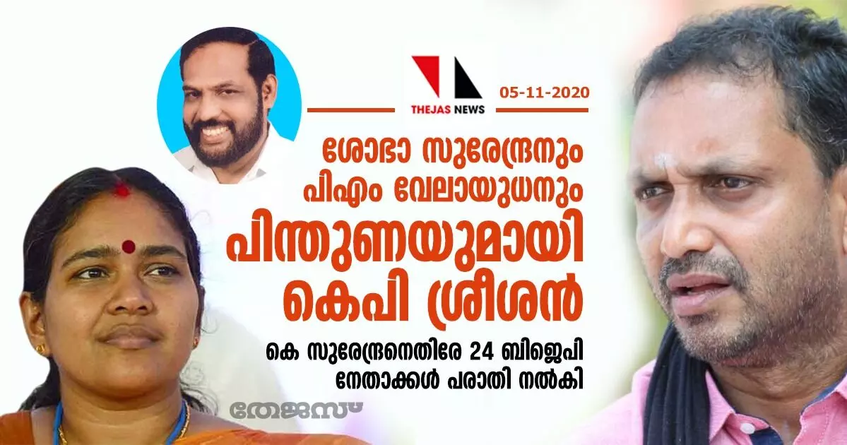 ശോഭാ സുരേന്ദ്രനും പിഎം വേലായുധനും പിന്തുണയുമായി കെപി ശ്രീശന്